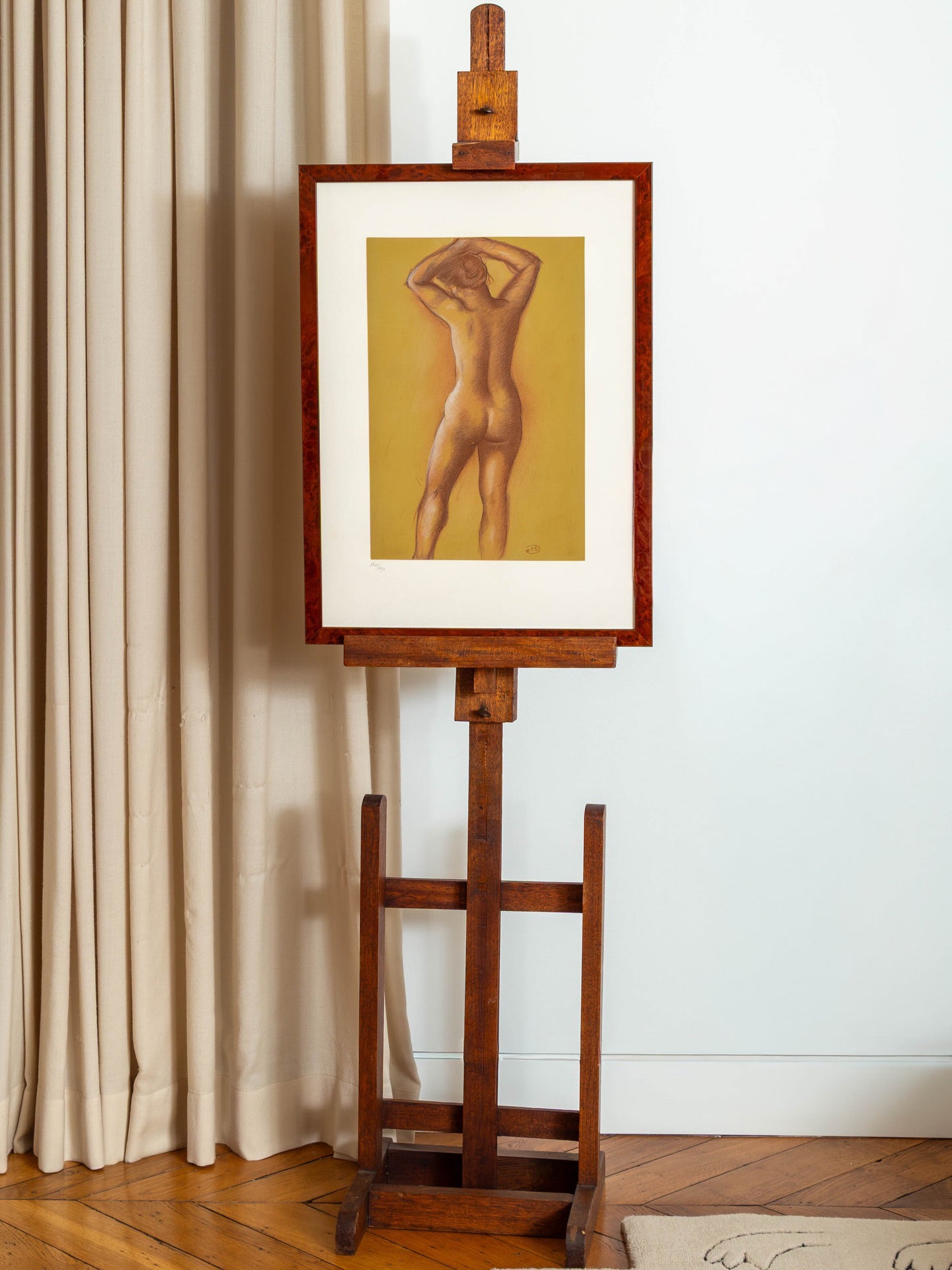 Lithograph made after the pastel on paper by Aristide Maillol Dina se coiffant de dos, and published by the Galerie Dina Vierny.